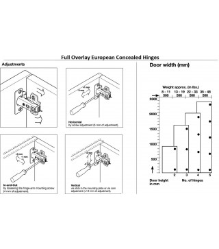 MAIN FEATURES: The hinge will have a straight arm and it allows your cupboard door edge to be completely in line with the edge of your Cabinet. One major advantage of a full overlay concealed hinge is that is fully adjustable due to three little screws which it has. They can be fine-tuned to ensure the door frame Is totally concealed and fits together perfectly.
