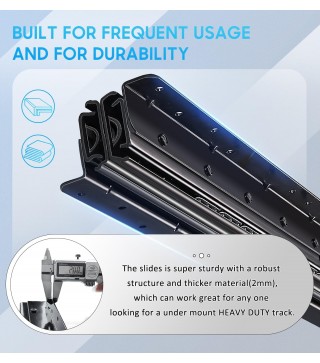 【Heavy duty up to 260lb】The drawer slides is made of high-density and high-strength 2mm thickness cold rolled steel and industrial solid steel ball, of which the heavy duty is up to 260lbs, tripled that of the other ordinary rails. is committed to produce sturdy and durable drawer slides , the service life of the slide rail could be 30 years at least.