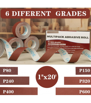 Multiple Grit Emery Cloth Roll: 1 inch 20 feet sandpaper assortment pack includes 80, 150, 240, 320, 400, and 600 grits for progressive sanding from coarse to fine