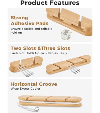 Dual Clip Combo Design (2-Slot + 3-Slot) – Includes one 2-slot and one 3-slot solid walnut cable holder. Each slot comfortably holds up to 3 cables, and fits up to 4 cables when needed. For phone charging cables, USB cords, and other thin wires. Not suitable for thick power cords.