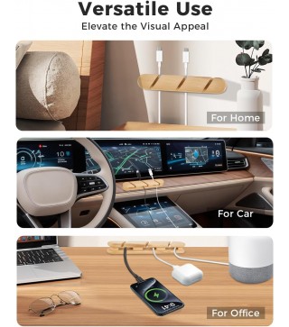 Premium Natural Beech Wood Construction – Crafted from high-quality natural beech wood, this cable holder offers reliable durability and a clean, minimalist look that blends seamlessly with modern desks and home offices, outperforming typical plastic organizers.