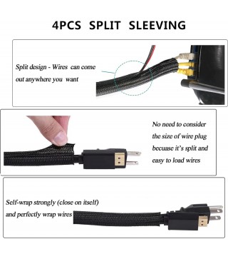 Easy to Install:Our wire loom is split and easy to load wires. Once loaded, our braided cable sleeve will close on itself and perfect wire wrap. No drilling, nailing or taping required.This cord protector also can keeps cat from chewing cables