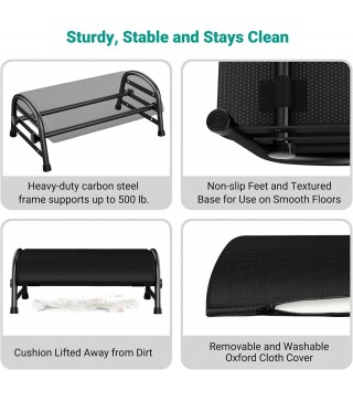 【Adjustable Design】Under desk foot rest for office has 4 height and 2 angle positions to fit people, desks, and chairs of all heights. Product size: 19.2”L x 12”W x 4-10”H.