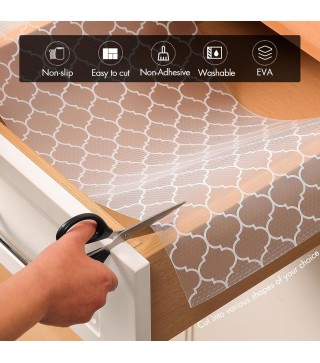 Protective Shelf Liner: Non adhesive EVA shelf liner, easy to install and remove, always keeping the surface of your shelves clean and dry, protecting them from moisture, stains or scratches. Anti-slip design, the shelf liner for kitchen cabinet always stays flat and no curl