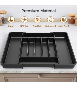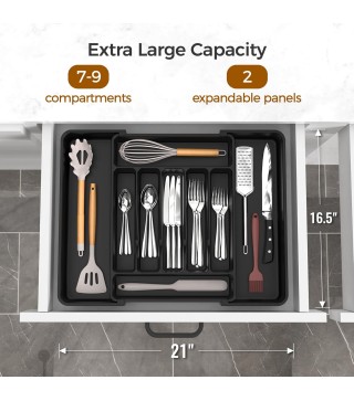 【Adjustable Size】:The width of the utensil drawer organizer expands from 12.4" to 21", perfectly fitting most standard drawers. (Measure your drawer before buying for the best fit).