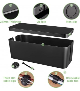 [Easy to Use] Super easy installation, simply put power strip and cables inside the cord management box and close the lid.