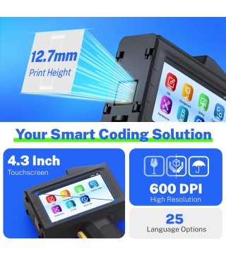 Easy USB Printing & Friendly UI: This hand held printer supports USB file import (TTF, PNG, JPG, BMP) for quick data updates. Operated via a 4.3" touchscreen with 25 language options for seamless team use across regions.