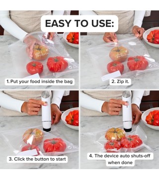REUSABLE & RESEALABLE BAGS: Chef Preserve comes with dishwasher, freezer, refrigerator, and microwave-safe bags that BPA-free. The bags are odor-free & leak-proof, and preserve flavor, nutrition and texture of the food.