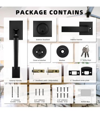 【Safety & Convenience】This exterior door lock set comes with a single cylinder deadbolt that can be opened by an exterior key, and have a secure lock inside, which provides dependable, security for your home. The black front door handle and deadbolt set includes all the necessary hardware components you need for an easy installation, including an installation instruction.