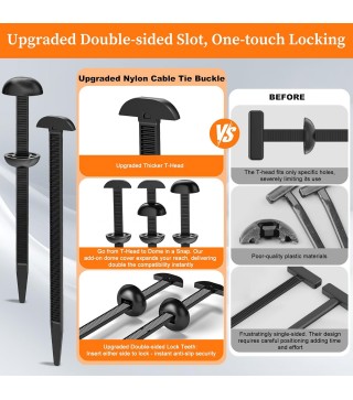 QUICK, SIMPLE & TOOL-FREE INSTALLATION: Featuring a one-click self-locking mechanism and newly upgraded dual-sided grooves for extra stability, these zip ties install effortlessly—no tools needed! Just press and lock into place for a fast and secure replacement of original fasteners, saving you time and hassle.