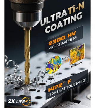 HSS Titanium Coating - Classic HSS construction with titanium coating for capability and durability. The cutting edge is hardened and honed for sharpness, chatter-free design with staggered cutting teeth ensure the precise countersinking and hole smooth clean.