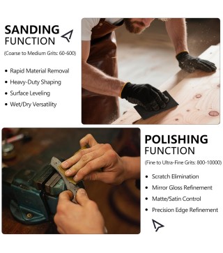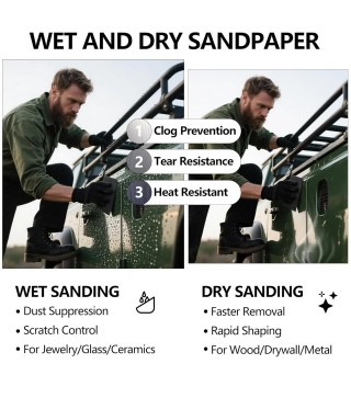 Wet and Dry Use: It can be utilized for both wet and dry sanding. Wet sanding helps reduce the occurrence of scratches and minimizes dust emissions, while dry sanding offers faster material removal and convenience.