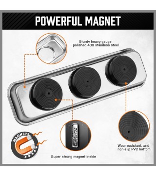 Magnetic Tray for Easy Use - The 22.5x6.5cm magnetic tray securely holds small metal parts while you work.