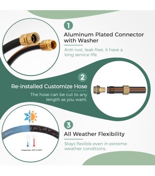 All-weather Flexible: This hose can resist wide-range outside temperature from -40 to 150 degree fahrenheit, suitable for all seasons. The rubber component allows the hose to remain flexible in extreme temperatures, defying heat or cold, still easy to coil and uncoil.