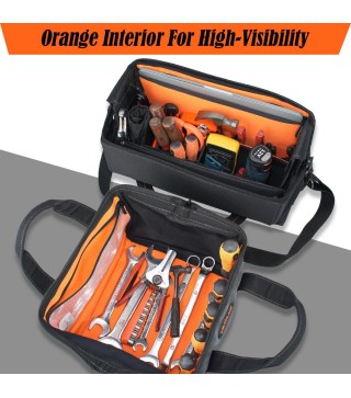 Customizable Organization: This tool bag set features 25 total pockets. The main 15-inch technician tool bag includes 4 adjustable dividers to create your perfect layout and stop worksite rummaging.
