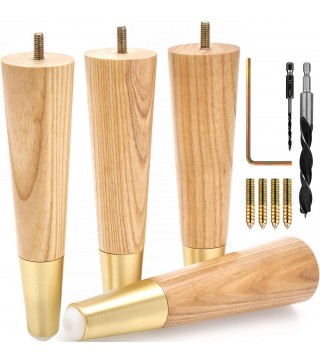 Made From Ash Wood With Stylish Gold Caps: Forget about sofa feet made from low-quality rubberwood or others generically labeled as "solid wood;" Our mid century table legs are made from high-quality natural ash wood with firmly attached gold caps; Since we use real wood, the grain and color of each leg will vary slightly