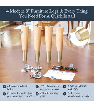 Easiest To Install Legs On The Market: Bold statement, but one we're confident in saying; You'll receive professional, step-by-step instructions that we created along with (2) drill bits, (4) mounting plates, (12) premium screws, and (4) protective felt pads; We even pre-installed the M8 hanger bolts for you (and include interchangeable 5/16 bolts in case you need them)!