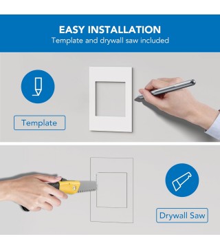 Easy DIY installation – Designed for renters and homeowners who want the look of a pro install without hiring an electrician. This is a plug-in system (not hard-wired) and includes a drywall saw, and cutting template with step-by-step instructions for a simple setup in under 30 minutes.
